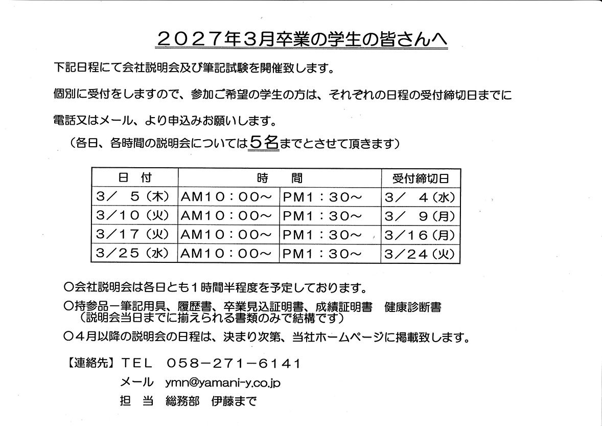 学生のみなさんへ(3月会社説明会日程)